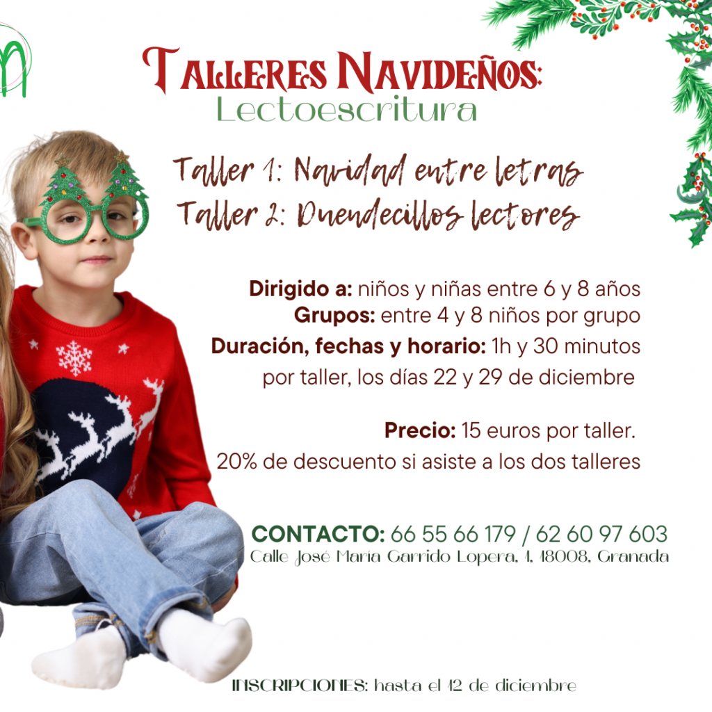¿Buscas talleres navideños educativos en Granada donde tu hijo mejore lenguaje, lectura o escritura mientras se divierte? En Clínica Cumen ofrecemos un programa especial de talleres infantiles de lenguaje y lectoescritura, diseñados para niños de 3 a 8 años. Actividades navideñas, juego guiado y ejercicios específicos para estimular la comunicación, la comprensión y las habilidades escolares.
